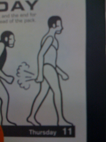 ReplyDeleteIt's the Benrik desk calendar...I forget what it's called now but everyday it tells you to do something obsurd. I forget what that day was...but I was the one who totally added that fart bubble....tee hee!!